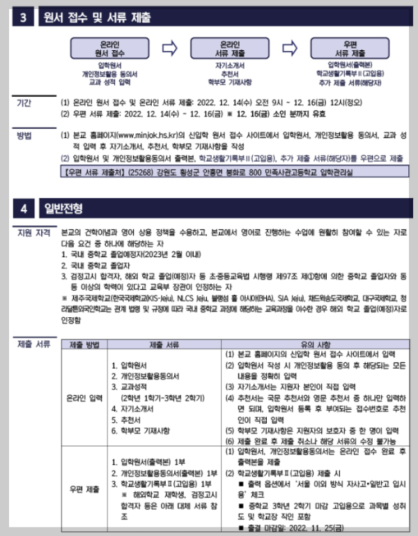 1. 민족사관고등학교의 입학전형(2023 기준)