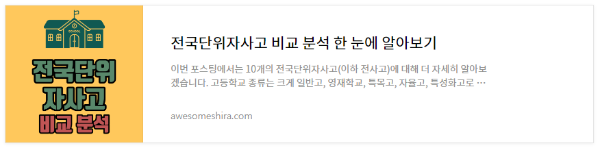 자사고의 경우는 말 그대로 자율형 사립고로 서울지역의 자사고와 서울이외(전국단위자사고, 이하 전사고)자사고로 구분합니다.