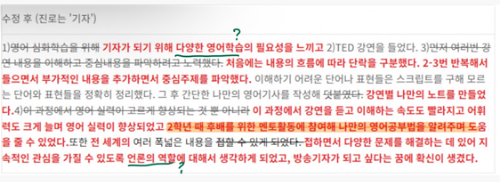 '기자가 되기 위해 다양한 영어학습의 필요성을 느끼고'의 부분에서 어떤 궁금증이 생길까요?
