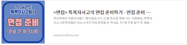 | <면접> 특목자사고의 면접 준비하기 - 면접 준비 전 체크사항 (0) | 2023.11.14 |
