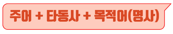 타동사가 이끄는 3형식 문장은 우리말 해석으로 목적어에 해당하는 '을', '를'의 의미가 들어갑니다.
