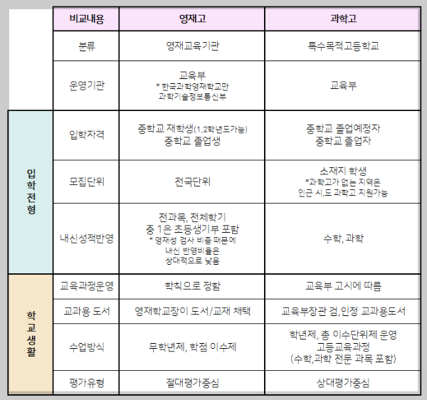 수학이나 과학 분야에 능력을 보이는 친구들이 초등 시절부터 영재고, 혹은 과학고를 준비하는데 있어 도움이 되고자 영재고와 과학고의 차이에 대해서 알아보도록 하겠습니다.