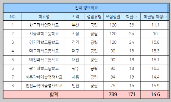 또한 영재학교는 지역인재 우선선발 계획, 중복지원 금지 등의 전형 변화가 생겼습니다.