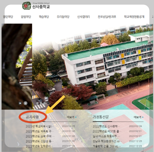 예시로 신사중학교에 들어가볼까요?