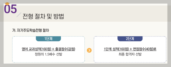 한영외고는 외국어고등학교로 외고/국제고의 입학전형을 따르기 때문에 전형 절차는 아래와 같습니다.