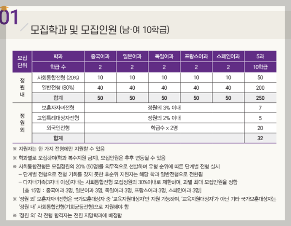 단, 영어과는 2023학년도부터 운영이 중단되어 2023년도 영어과 신입생은 선발되지 않았습니다.
