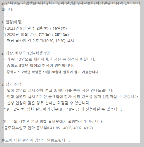 <입학설명회> 2024년도 2학기 공주사대부고 입학설명회