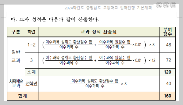 출처: 2024학년도 충청남도 고등학교 입학전형 기본계획