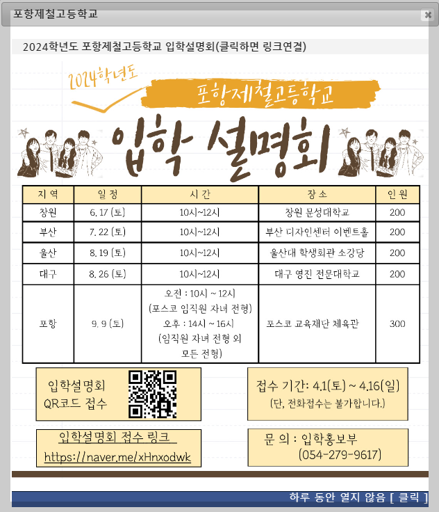 포항제철고의 입학설명회는 학교가 있는 지역이 아닌 타지역에서 설명회를 진행하므로 일정별 장소도 확인이 필요하겠습니다.