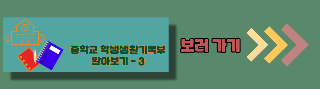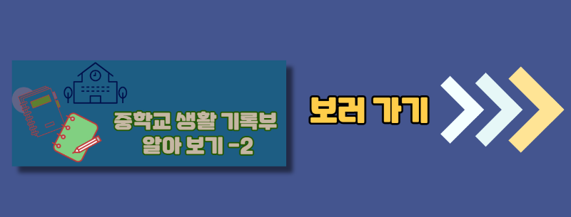 | 중학교 학생기록부 알아보기-3 (자유학기활동상황, 독서활동상황, 행동특성 및 종합의견) (0) | 2023.02.10 |