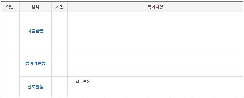 이 글에서는 학생기록부 기재사항 중 선택사항들에 대해서 알아보겠습니다.
