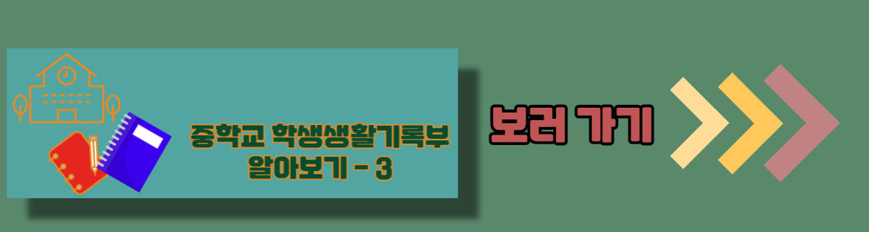 | 중학교 학생기록부 알아보기-3 (자유학기활동상황, 독서활동상황, 행동특성 및 종합의견) (0) | 2023.02.10 |
