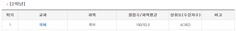 2,3학년 혹은 평가가 있는 학기에는 아래와 같이 성취도가 기재됩니다.
