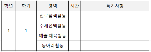 자유학기 기간 동안 활동하는 활동이 기재되는 란으로 이 부분은 학교에서 자유학기에 대해 얼마나 준비하고 계획하고 있는지에 따라 내용의 질이 많이 다를 수 있습니다.