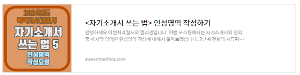 | <자기소개서 쓰는 법> 인성영역 작성하기 (0) | 2023.10.23 |