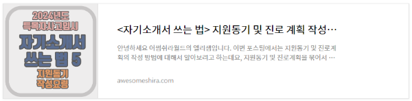 | <자기소개서 쓰는 법> 지원동기 및 진로 계획 작성하기 (0) | 2023.10.18 |