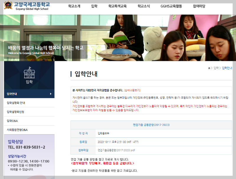 고양국제고는 매년 홈페이지에 공통문항에 대한 기출문항을 안내해줍니다.