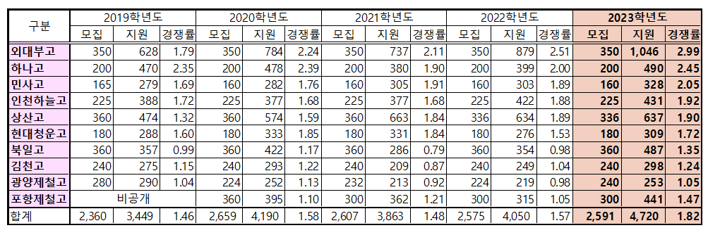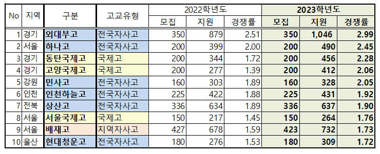 최근 정원 미달이 발생하기도 했던 자사고와 외고, 국제고 등 특목고의 경쟁률이 2023년 모집에서 상승하는 모습을 보여주었습니다.
