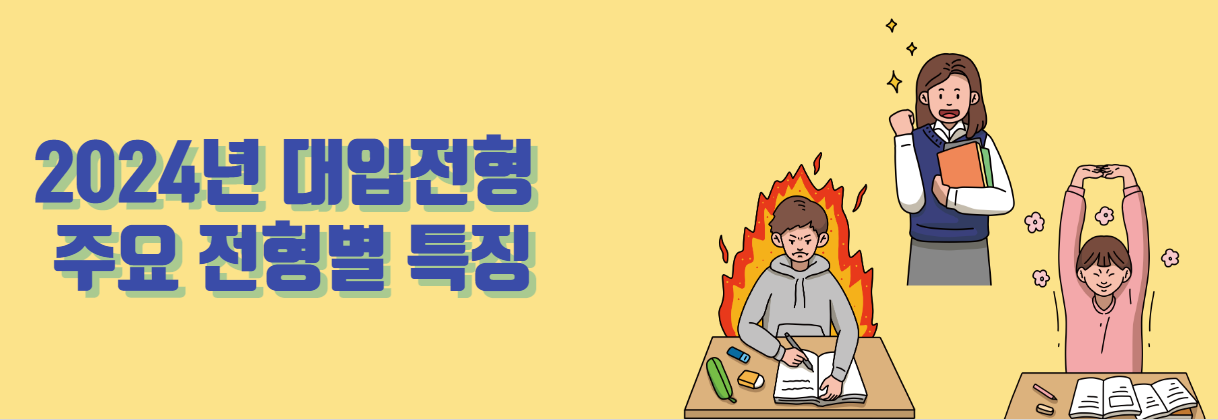 이에 따른 2024학년도 대입전형의 주요 전형별 특징을 알아보겠습니다.