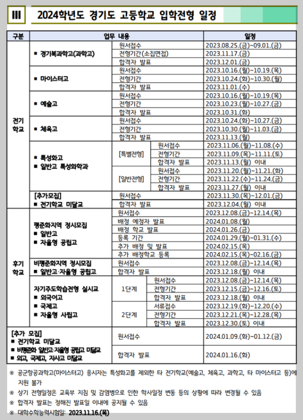 1. 2024년도 경기도 고등학교 입학전형 일정