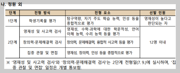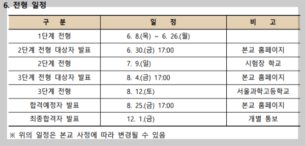 4월 7일 영재학교인 서울과학고가 홈페이지에 입학전형 요강을 발표했습니다.