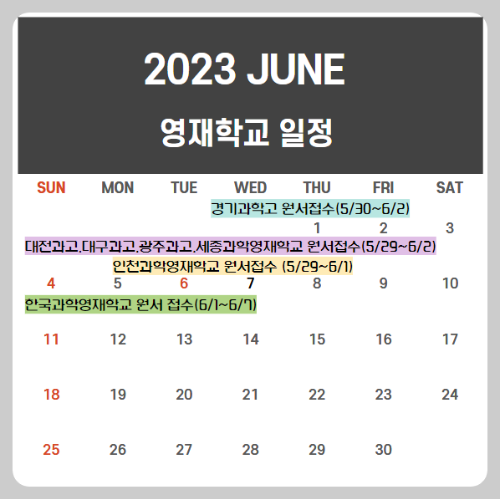 6/7일까지 원서 접수를 진행하는 한국과학영재학교가 남아 있는 상황입니다.