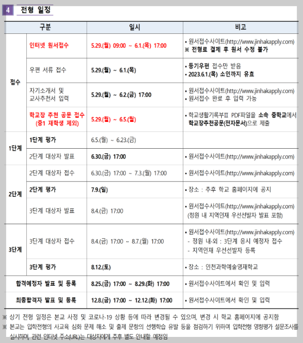 인천과학예술영재학교의 입학전형요강 중 추후 일정은 아래와 같습니다.