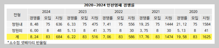 2020학년도부터의 인천영재학교의 경쟁률의 추이는 다음과 같습니다.
