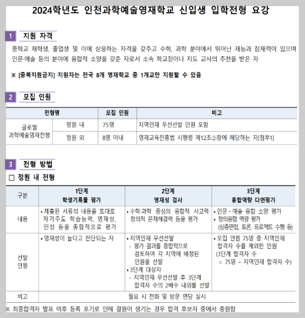 1. 2024학년도 인천과학예술영재학교 경쟁률